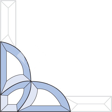 Набор из 3 фацетированных элементов размерами 113 х 113 мм, предназначенный для использования в витражах изготавливаемых по технологиям Тиффани, классической и аппликационной.