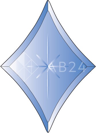 Фацетированный голубой стеклянный элемент в виде четырехлучевой звезды с алмазной гравировкой на поверхности размером 136 х 190 мм, предназначенный для использования в витражах изготавливаемых по технологиям Тиффани, классической и аппликационной.