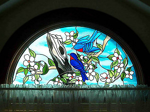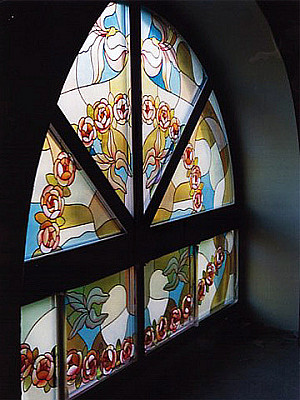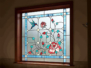 Витражное стекло с применением свинцовой ленты, витражной пленки и дизайнерских фацетов