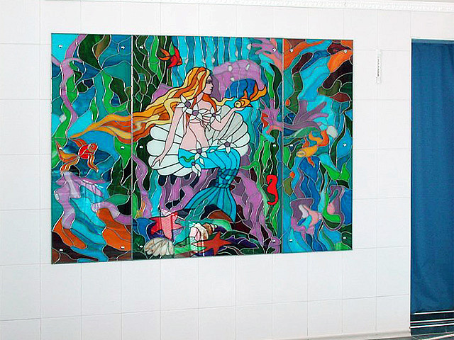 Витражное стекло с применением свинцовой ленты и витражной пленки